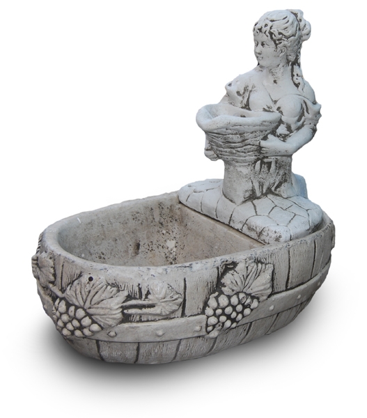Garden fountains made of white cement and marble dust with an antiqued look.